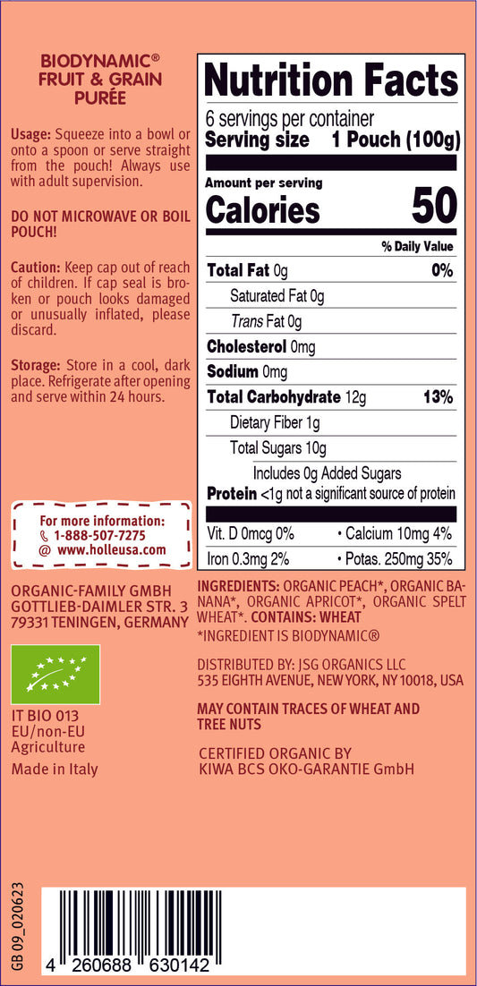 Holle Baby Food Pouches - Organic Fruit & Grain Puree - Panda Peach