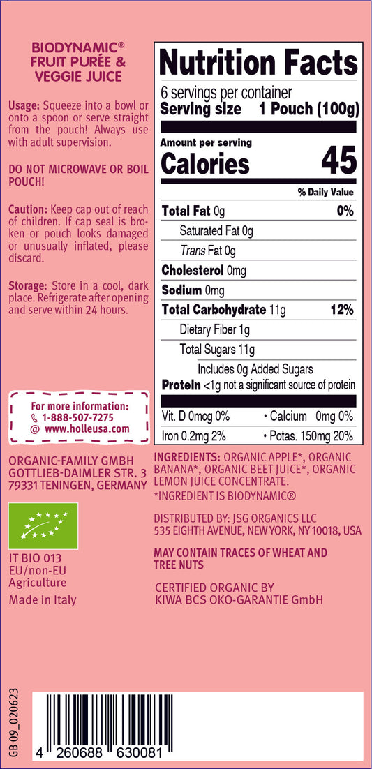 Holle Baby Food 6 Pouches - Organic Fruit & Veggie Puree - Zebra Beet